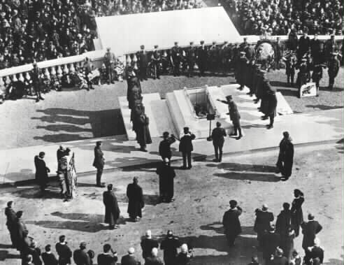 The bodies of many soldiers killed in World War I could not be identified. To honor them, the remains of one were brought to the U.S. Capitol to lie in state, and on Armistice Day 1921 they were ceremoniously buried in Arlington National Cemetery. The tomb bears the inscription "Here rests in honored glory an American soldier known but to God." Congress later directed that an "Unknown American" from subsequent wars -- World War II, Korea and Vietnam -- be similarly honored. Because of the development of DNA technology, the unknown soldier from the Vietnam War was recently exhumed and identified. There may never be another unknown soldier.
