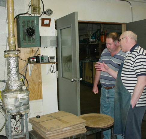Here Grumbles is discussing a processes system developed for the cleaning preparation of parts to be coated. The gentleman he is talking with is a medal holder of the Order of the Russian Federation for his development of a single stage purification process to 0.5 ppm.
