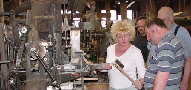 We left there for a quick visit the other extreme of industry at a wire brush manufacturer. Here Grumbles “tries” to pretend he is looking a the finished product of a process he just studied.