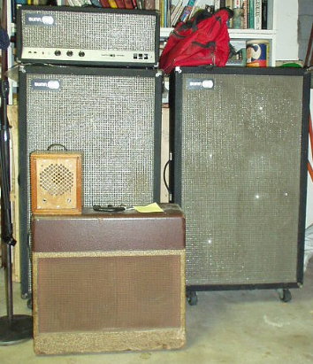 ... Strat & P-bass are matching white-on-black 1964 models, and my prize Gibson ga-30 amp of indeterminate age, prob. pre-1950...quite the vintage collector I am, no?