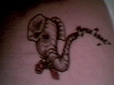 I plan on getting 2 others.. one on my ankle (a train of elephants trunk to tail)... and someday.. a tat of a mates initials on my breast bone.