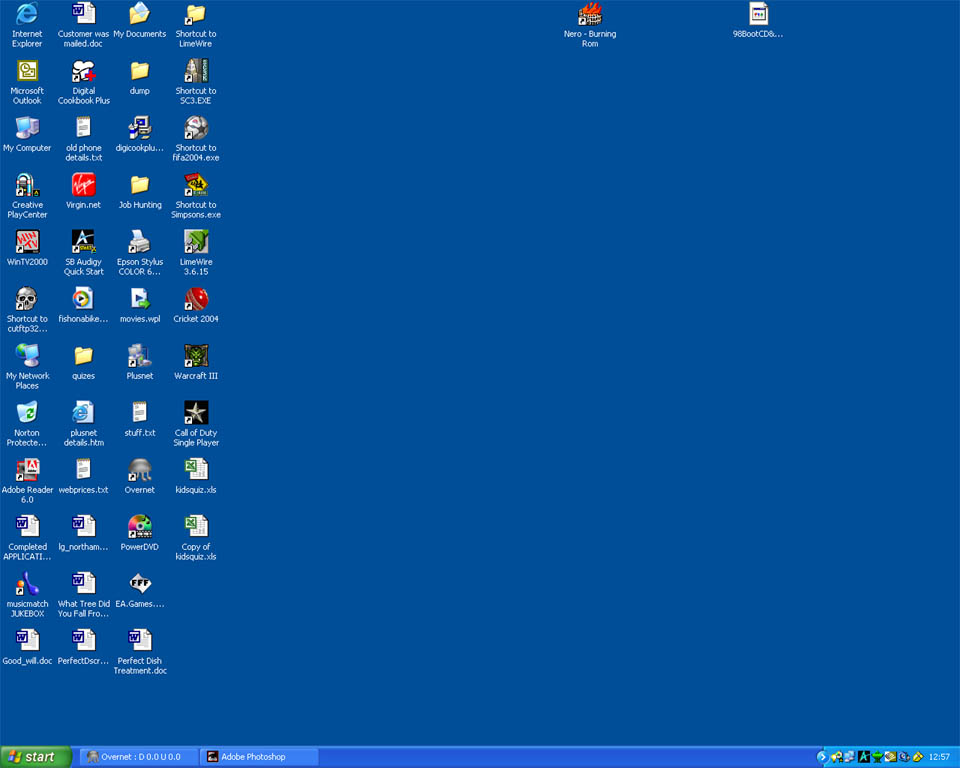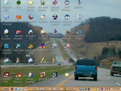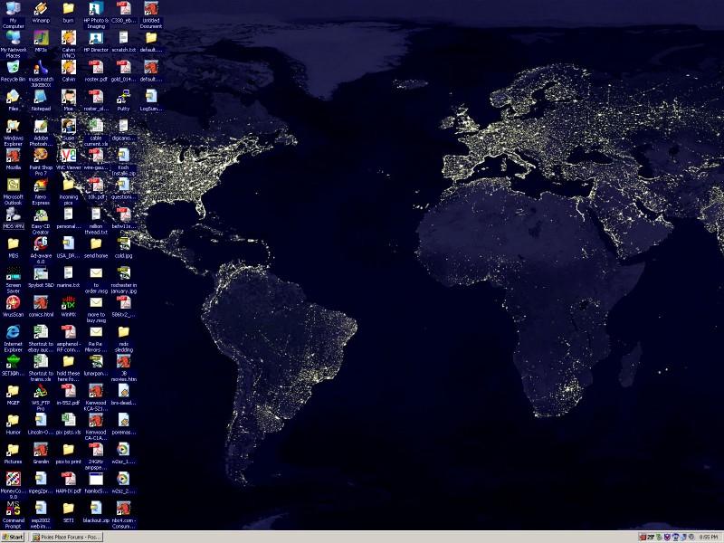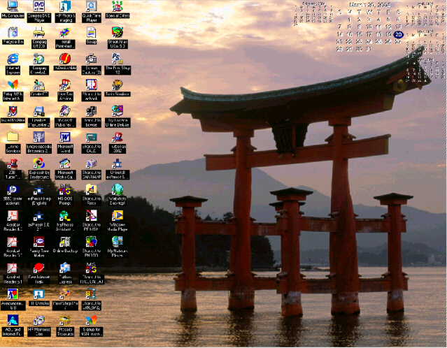 I think it would be kinda fun if we all took pics of our desktops and posted them here. And no I don't mean with your printer and webcam and stuff. I mean your other desktop, with your start bar and icons and everything, lol.